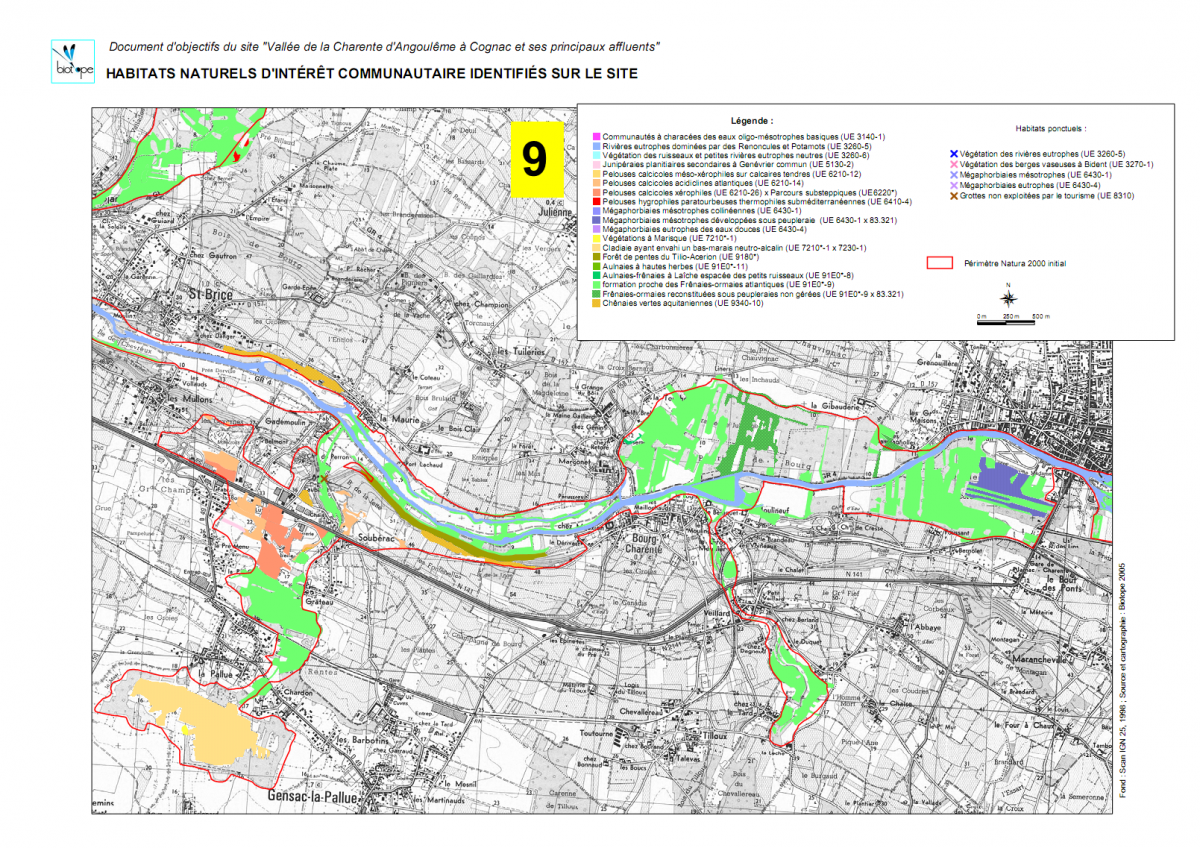Le site Natura 2000 "Vallée de la Charente entre Angoulême et Cognac, et ses principaux affluents (Soloire, Boëme, Echelle) présente 14 habitats d’intérêt communautaire dont 4 prioritaires.